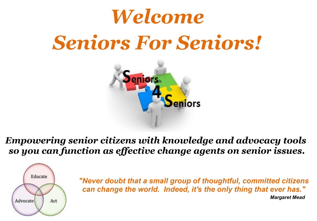 Seniors-4-Seniors is designed to provide that empowerment along with the tools and methodologies enabling NJ citizens to be extremely effective advocates to elected officials and official representatives at our local, county, state and federal governments.